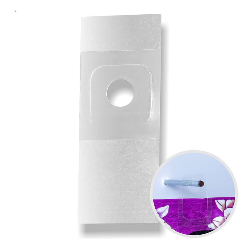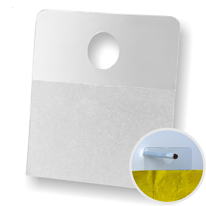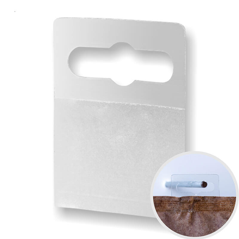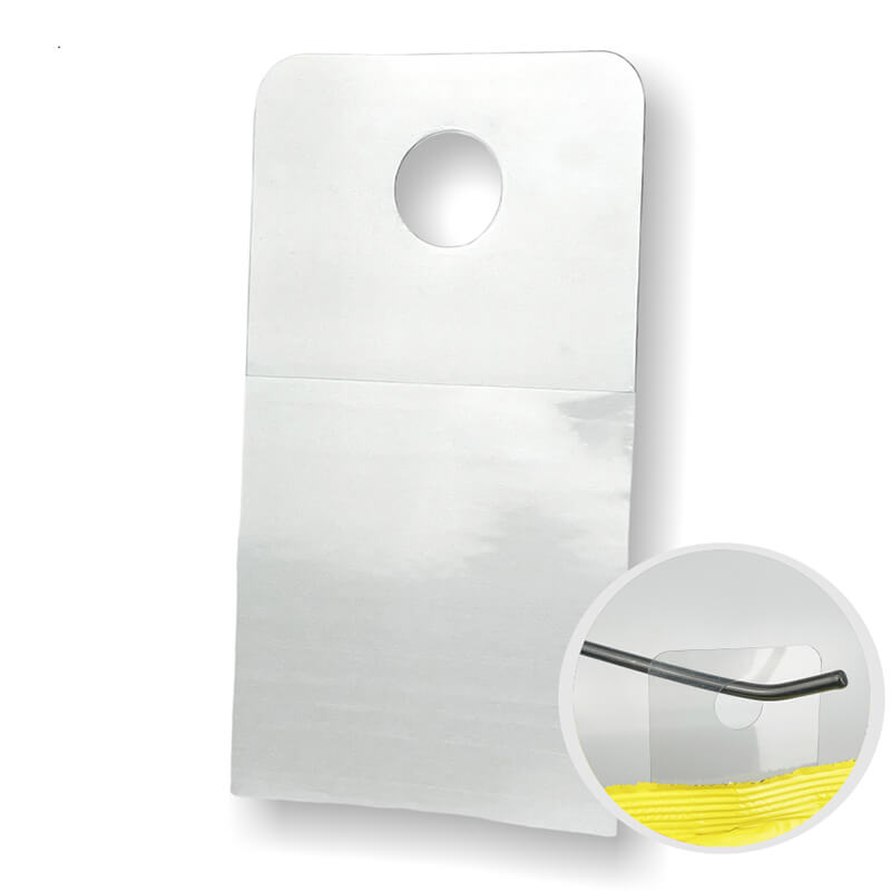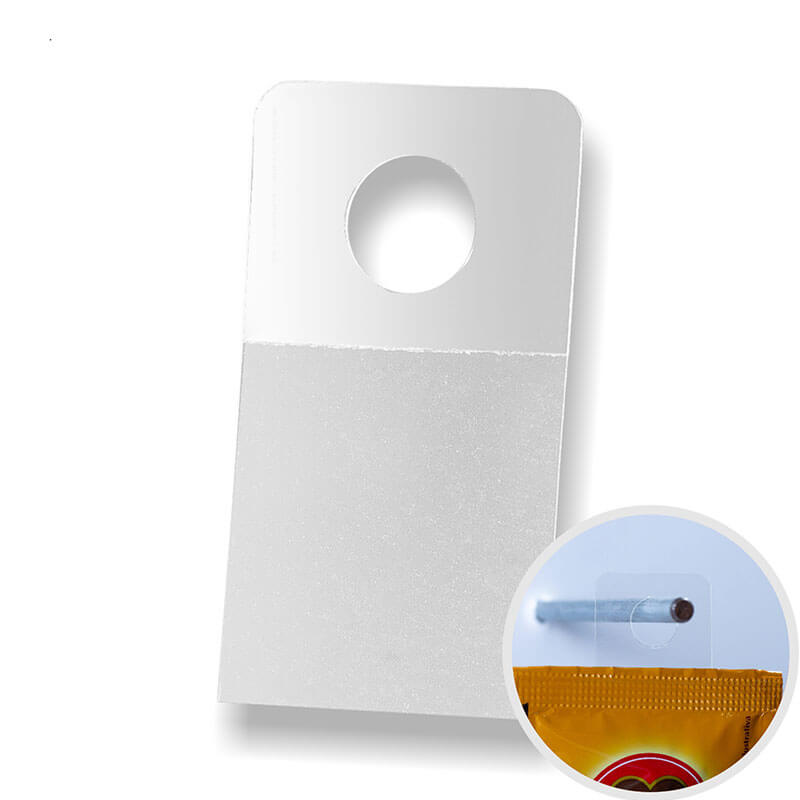 O Hang Tab é uma etiqueta plástica adesiva com furo na parte superior. Possui uma camada adesiva de alta performance utilizada para colar nas superfícies das embalagens.