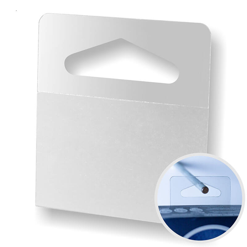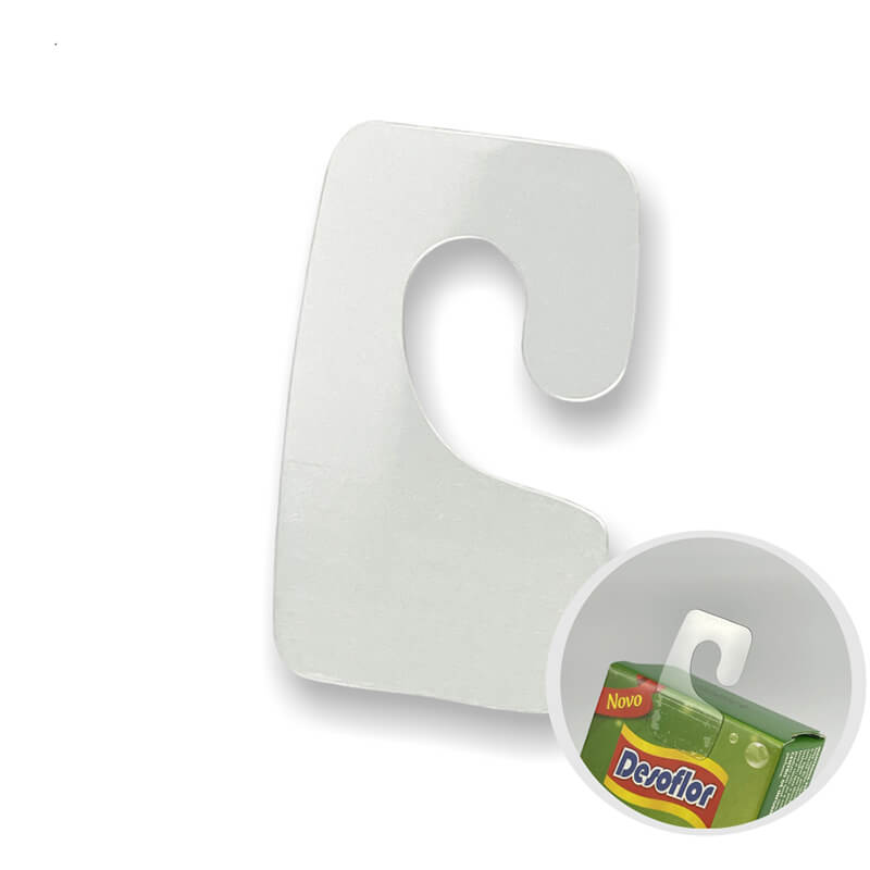 Os Hang Tabs são aplicados diretamente na embalagem e permitem pendurar os produtos em áreas estratégicas da loja. Aumentando, assim, a exposição e facilitando o acesso do consumidor.