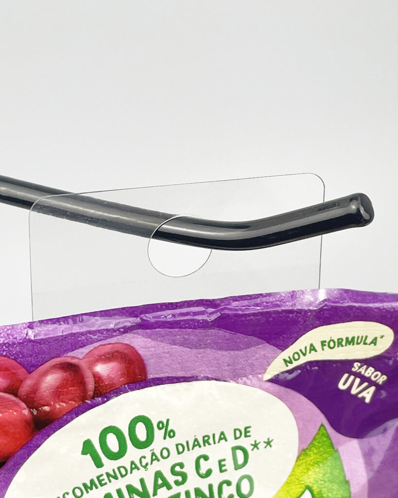 Desta forma é possível pendurar produtos em gôndolas, gancheiras e prateleiras, promovendo, assim, uma melhor exposição no ponto de venda.